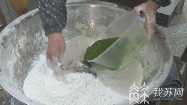 一般是先把采回来的蒿蒿嫩叶洗干净、打成菜汁,和入糯米粉里,一揉一撮,洁白的面皮很快就变成了淡绿色。