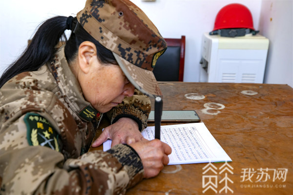 “咱们哨所有接班人了,在你走后成立了开山岛执勤班,15天一次轮换。每次由3名民兵驻岛。岛上的这些树木、营房、设备仪器等,你就放心吧!”写到这里,王仕花轻轻转身,眼神热切地看了看身边围着的民兵志愿者们,只见身着迷彩服的他们,同样神情肃穆,眼中泛出激动的光彩。颜兵是第三批守岛民兵,如今已在岛上驻扎近15天。看到王仕花在家书中提及他们,他也不禁感慨万千:“在今后的工作、学习和生活中,我们会把王继才同志的爱国奉献精神宣传好、传承好,踏着他的脚印,尽心尽职地把开山岛守好!请祖国放心!请王大哥放心!请王大姐放心!”他的发言铿锵有力。