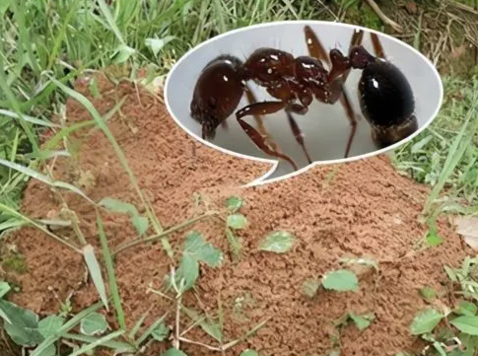 红火蚁的蚁巢比较容易辨认,一般有30厘米~40厘米高,下雨后很容易凸显出来。