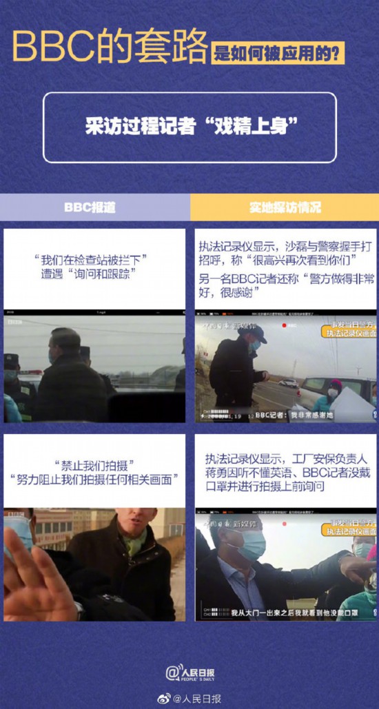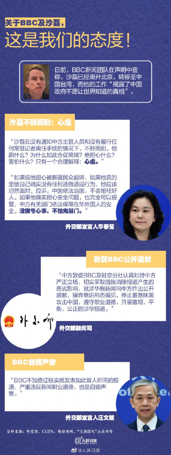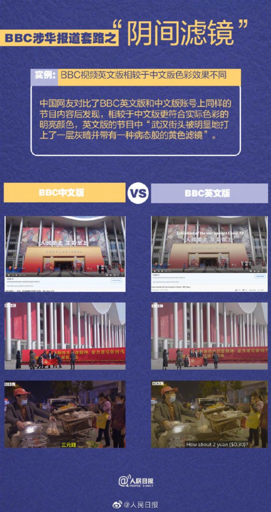 近来,BBC频频播出带有意识形态偏见的涉华假新闻,还借口沙磊非正常离境问题倒打一耙。预设立场、移花接木、来源失实、编造故事、使用“阴间滤镜”……外交部发言人赵立坚说BBC是偏见广播公司。BBC如何使用拙劣手法来抹黑中国,戳图了解。