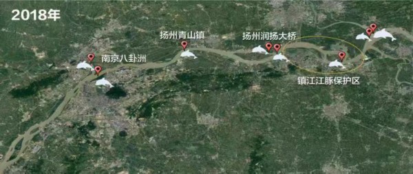 发布会现场,江苏省生态环境厅自然生态处处长朱德明晒出的两组照片,吸引了诸多媒体记者的关注。一组是2018年与2020年江苏江豚监测的对比情况,另一组是2017年与2020年灌河口的卫星监测对比照片。
