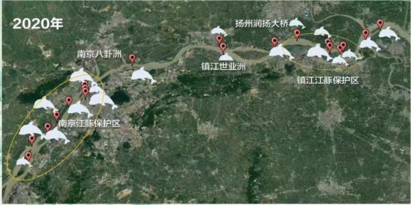 在两张江豚精准监测的照片上,记者看到,与2018年相比,2020年江豚的种群数量明显增加。