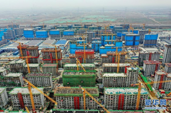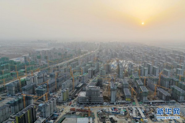 3月31日拍摄的建设中的容东片区(无人机照片)。