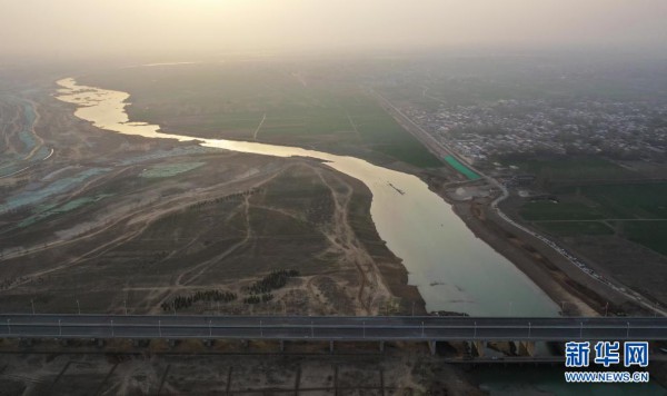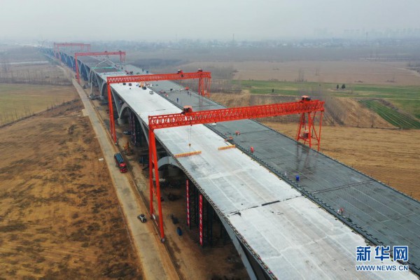 3月19日拍摄的京雄高速建设现场(无人机照片)。