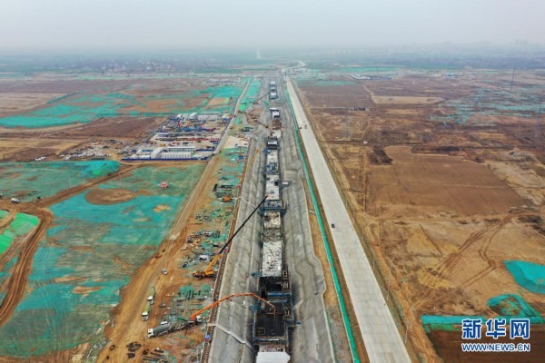 3月18日拍摄的雄安新区启动区地下管廊施工现场(无人机照片)。