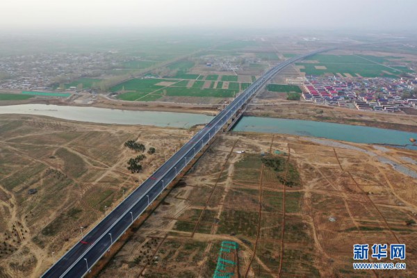 3月31日拍摄的建设中的京雄高速(无人机照片)。