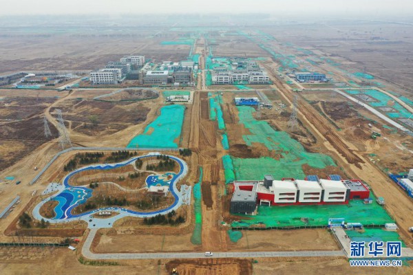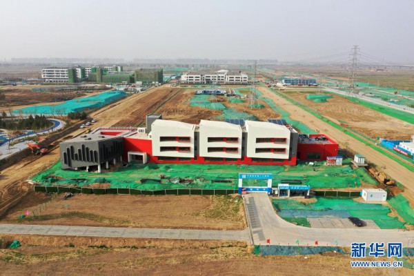 3月31日拍摄的建设中的北京四中雄安校区(无人机照片)。