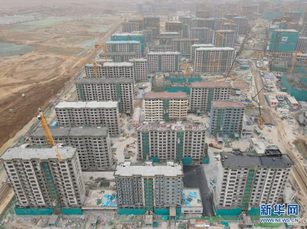 3月18日拍摄的雄安新区容东片区安置房建设现场(无人机照片)。