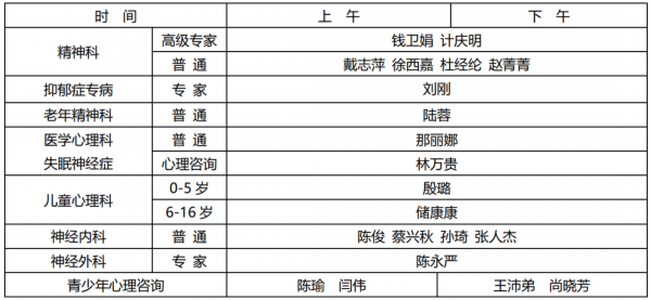专家门诊停诊时间如下: