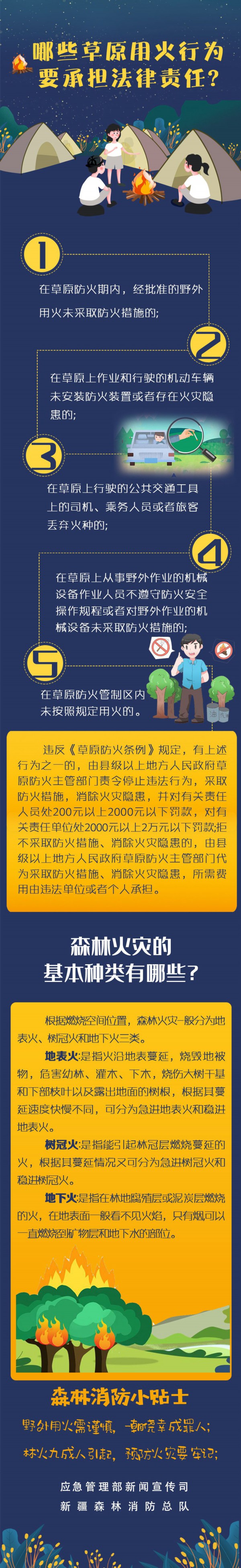 野外用火需谨慎,一朝侥幸成罪人;林火九成人引起,预防火灾要牢记。哪些草原用火行为要承担法律责任?一起来看看吧!