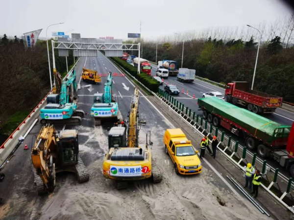 园区紧急召集南通路桥工程公司赶赴现场,研究海伦路跨线桥处置方案,初步判定需要紧急破拆。沈海高速全面实施管控,此时沈海高速已拥堵多时。