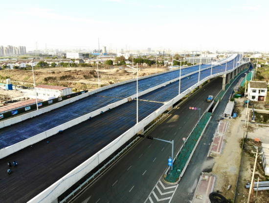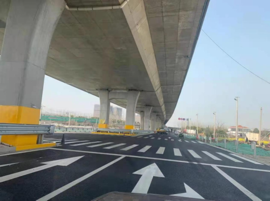 目前,高架主体已贯通,1-15联箱梁已完成沥青摊铺。高速出口至物流园3号门段地面道路已完成初步验收,起点至高速口段东侧地面道路主车道已通车,物流园3号门段至标尾东侧地面道路已通车。