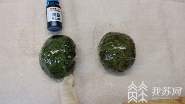 南京海关动植物与食品检测中心部门主管栾军介绍:我们主要是通过用仪器的方法来测其中的亮蓝,亮蓝是一种食用型的添加剂,青团是粉类谷物制成品,在粉类谷物制成品这个类别里面是不允许使用染色剂、食用染料、包括防腐剂的。