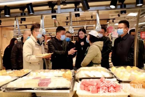 在吾悦广场永辉超市内,检查组对节令食品、地方特产食品,以及现场制售食品等进行了实地检查,重点查看了散装食品标签标识和当日生产现场制售食品加工经营规范、食材原料索证索票的台账资料等。通过检查发现经营单位安全管理比较规范,市场整体运行安全有序,检查组对检查中存在的台账建立不够健全的问题进行了现场反馈,并要求经营单位进一步落实主体责任,辖区市场监管部门继续加大监督检查力度,切实维护好市场安全。