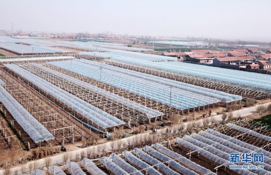 青岛莱西市沟东村新扩建的葡萄种植大棚(无人机照片,3月25日摄)。新华社记者 李紫恒 摄