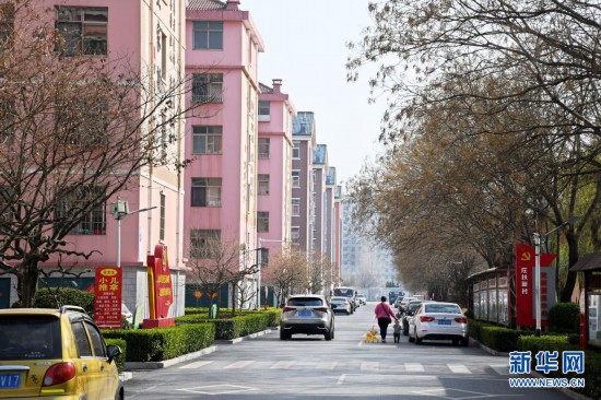 青岛莱西市庄扶新村村民小区宽敞的社区道路(3月25日摄)。新华社记者 李紫恒 摄