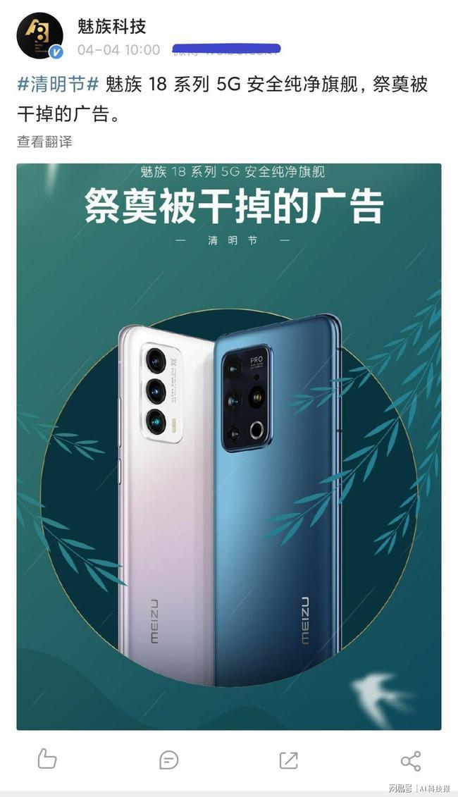 荔枝新闻讯 据@魅族科技 消息,4月4日早间,魅族科技发了一条微博文案,称“魅族18系列5G安全纯净旗舰,祭奠被干掉的广告”。对此,网友们纷纷表示不适。目前这条微博已被删除。