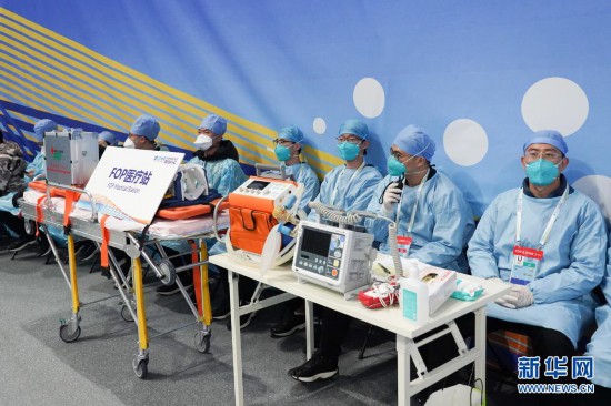 4月4日,医护人员在场馆内的FOP医疗站待命。新华社记者 彭子洋 摄