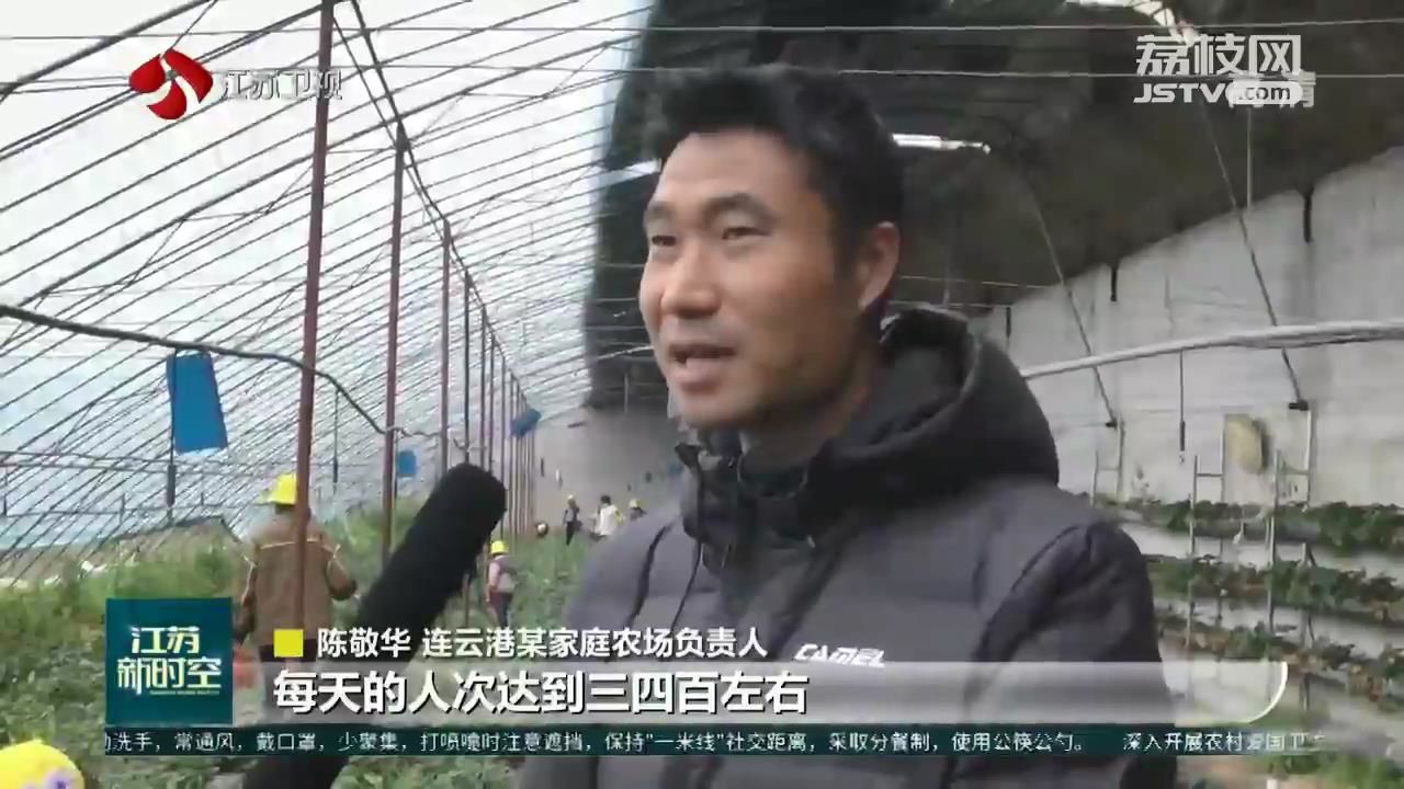 连云港某家庭农场负责人陈敬华告诉记者,农场里每天的人次达到三四百左右,草莓和西红柿的采摘量能达到1000多斤左右。