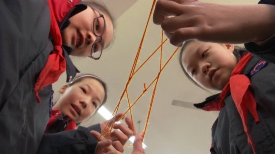 老师们针对每种游戏制作了教学视频,线上线下教学相结合,教会学生玩“爸爸妈妈小时候玩过的那些游戏”。这既能让学生积极主动参与到游戏中来,也传承了中华传统文化,增加家庭亲子时光。在五年级(2)班的教室里,学生蒋沂玲一边与同学玩着翻花绳游戏,一边告诉记者:“回家还跟爸爸妈妈一起研究过这个,他们以前都玩过,特别好玩,还能锻炼自己手指的灵活度。”