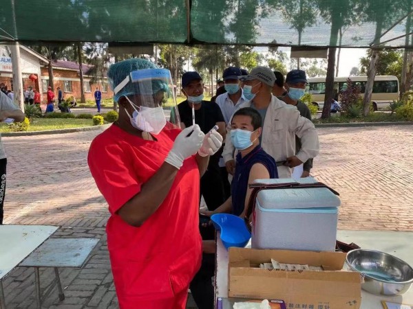 在接种现场,中国第18批援津巴布韦医疗队的队员们也在给前来接种的中国公民做心理疏导以及答疑解惑工作。