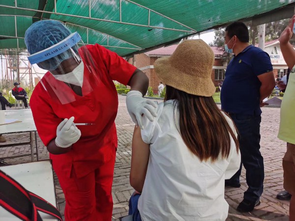 6日下午14时,65位在奎鲁工作生活的中国公民在当地的指定接种地点排起长队,按照津方规定流程逐一接种疫苗。现场井然有序,进展顺利。