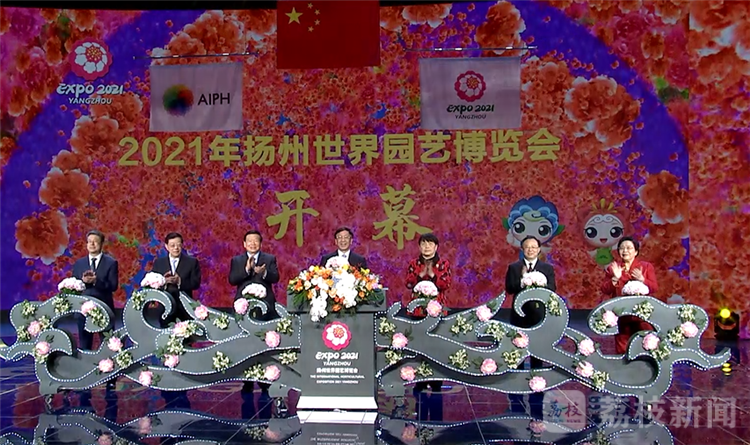 荔枝新闻讯 最美人间四月天,万紫千红展新颜。4月8日,以“绿色城市、健康生活”为主题的2021年扬州世界园艺博览会在扬州市仪征枣林湾开幕。全国人大常委会副委员长曹建明,第十一届全国政协副主席、中国花卉协会名誉会长张梅颖,省委书记、省人大常委会主任娄勤俭,省委副书记、省长吴政隆,全国政协人口资源环境委员会主任李伟,国际竹藤组织董事会联合主席、中国花卉协会会长江泽慧,国家林业和草原局副局长彭有冬出席开幕式并共同开启世园之门。曹建明宣布2021年扬州世界园艺博览会开幕。