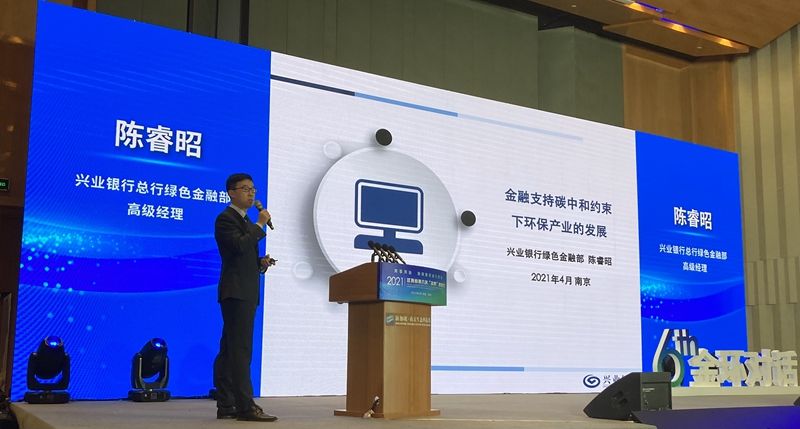 4月8日,江苏省第六次“金环”对话会在南京市建邺区生态科技岛科创中心举行,此次对话会围绕“共享共治,协同推进减污降碳”展开交流探讨。兴业银行总行绿色金融部高级经理陈睿昭受邀做题为《金融支持碳中和约束下环保产业的发展》的学术报告。据悉,兴业银行是唯一受邀作专题报告的金融机构。对话会期间,兴业银行南京分行还应邀参加了路演活动和银企对接会。