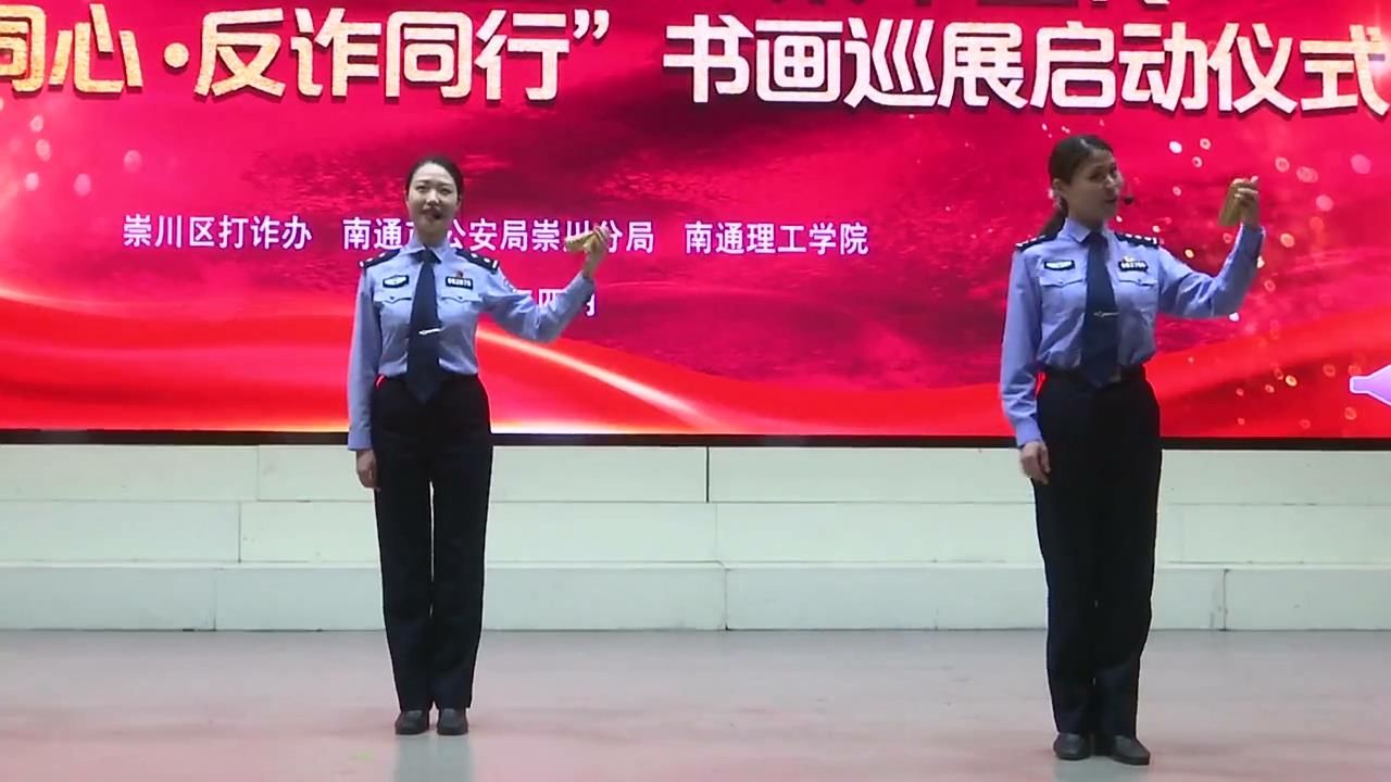 在今天的集中宣传上,警方通过歌曲,快板,知识问答,以及”你我同心 反诈同行“书画巡展来给同学们普及反诈知识,给同学们上了生动的一堂反诈知识课。南通市公安局崇川分局副局长陈爱军介绍:“凝聚各方力量,构建全社会参与,全领域覆盖的宣传防范格局,遏制电信网络新型违法犯罪的高发势头,全力提升人民群众的获得感幸福感安全感。”