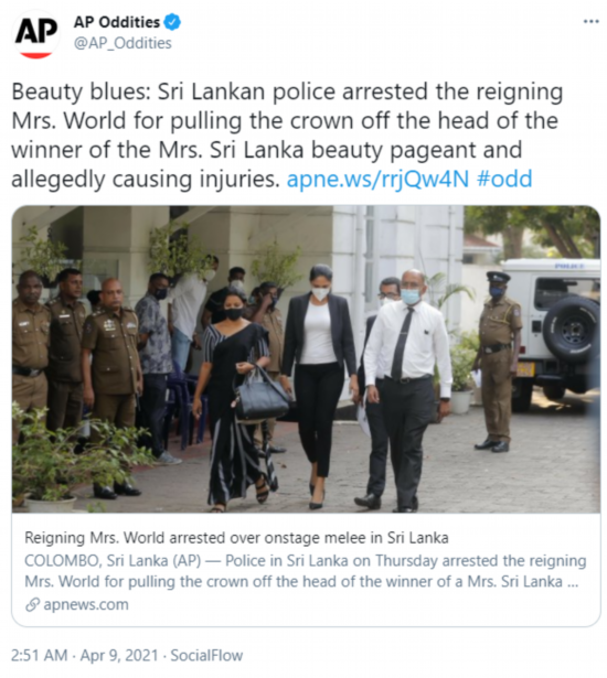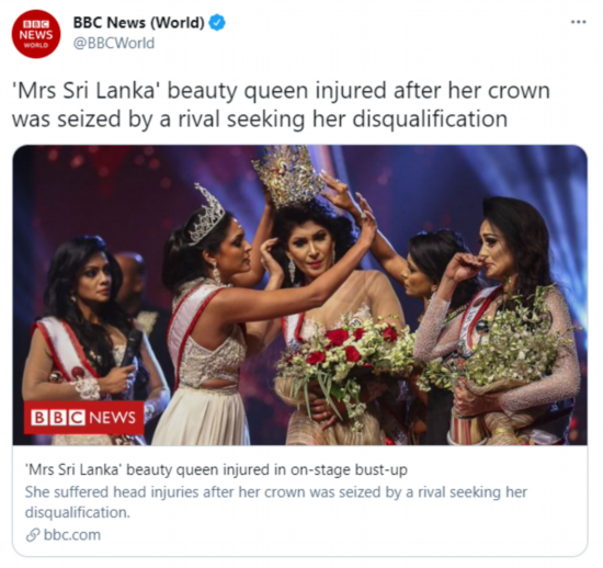 不过,让这场“斯里兰卡世界夫人”选美大赛出名在外的,倒不是因为选手有多美多优雅,而是因为混乱:皇冠被抢、冠军受伤、闹事被捕......