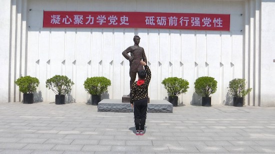(宋喆宇向张太雷烈士的铜像敬少先队礼)