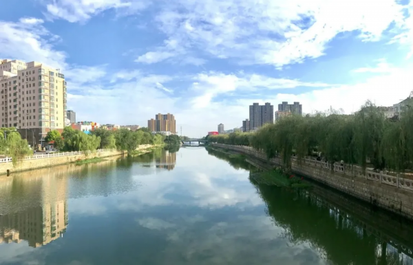 玉带河西起电厂闸,向东穿城而过,连接蔷薇河、西盐河、龙尾河,全长7.2千米,像一条玉带绕在古城的腰上,为古城增添了几分魅力和妖娆。