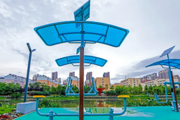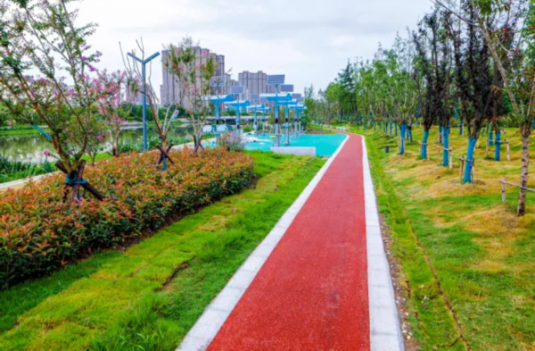 新建成的河滨公园集诚信教育、休闲观光、运动健身等多功能于一体,建设了健康步道、健身场地、标准化篮球场等,为市民休闲、娱乐、健身融入了新元素。