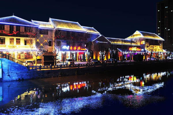 河畔的盐河巷历将文化元素融入建筑、道路、景观、雕塑、小品中,成为餐饮、娱乐、休闲的重要场所。这里的夜晚亮、人气旺、商家火,也是网红打卡必选之地。