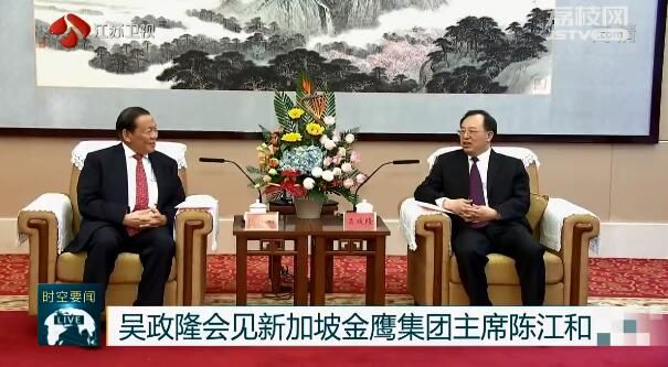 4月9日,省长吴政隆在南京会见新加坡金鹰集团主席陈江和一行,并共同见证有关合作项目签约。