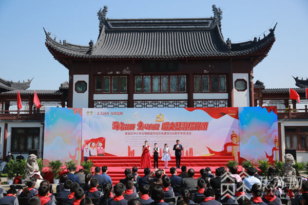 4月9日,由中共建邺区委宣传部、建邺区教育局、区委教育工委、建邺团区委、建邺区建设局、建邺区莫愁湖街道、建邺区文旅局主办,南京莫愁湖景区、南京市南湖第二小学承办的“海棠花开 童心向党——唱支赞歌给党听”建邺区中小学青少年“四史”学习教育暨合唱联盟学校庆祝建党100周年专场合唱活动在南京莫愁湖景区抱月楼举行。