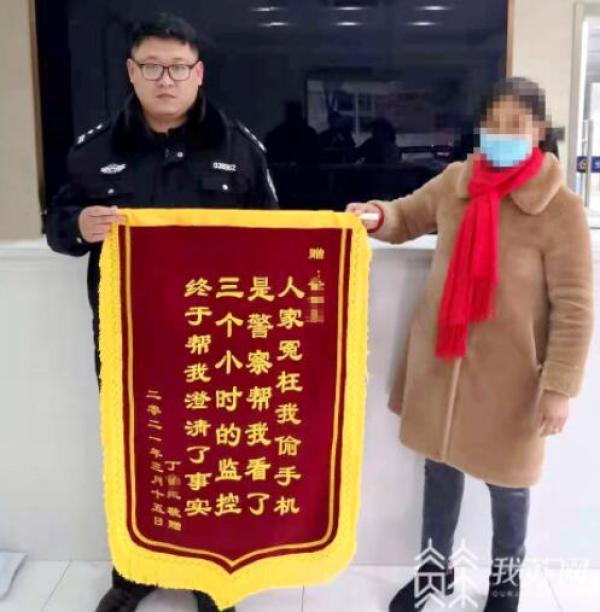 锦旗上写道:“人家冤枉我偷手机,是警察帮我看了三个小时的监控,终于帮我澄清了事实。”足足31个字,网友称这是“最接地气的锦旗”。