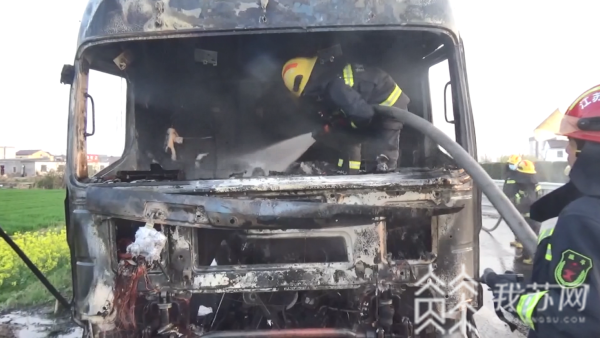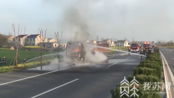 4月6日傍晚5点半左右,在346省道淮安市涟水县殷庄路段,一辆半挂货车在行驶时车头突然起火。接到报警后,涟水县安东消防站立即出动前往现场处置。