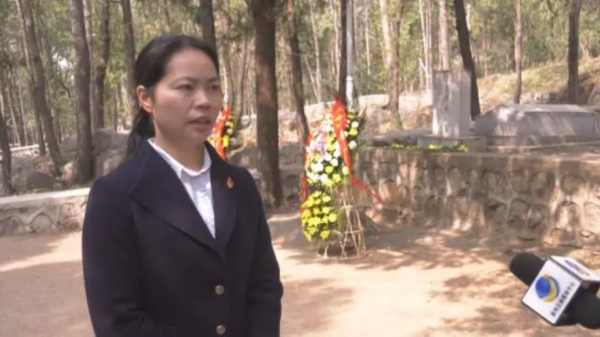 “长眠在盘山烈士陵园的廖峰烈士,是广西东兰1600多名革命志士用鲜血和生命践行革命理想和初心使命的代表,他们的英雄事迹必将与青山同在,永垂不朽。”东兰县副县长杨金姿深情感叹。