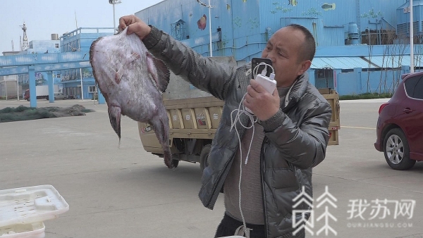 一名中年男子手拿手机在抖音平台做直播,不停地向在线围观的网民介绍刚从鱼舱里搬运上来的新鲜鱼货。“这个大嘴巴鱼你们看过吗?这个叫安康鱼,这条大鱼叫镁鱼,它的鱼鳔相当的值钱,这个鱼叫青砖鱼,它与马鲛鱼长得很像,好多人都分不清楚。”中年男子在镜头面前不停地向在线网友介绍着本航次捕捞的各种鱼品。