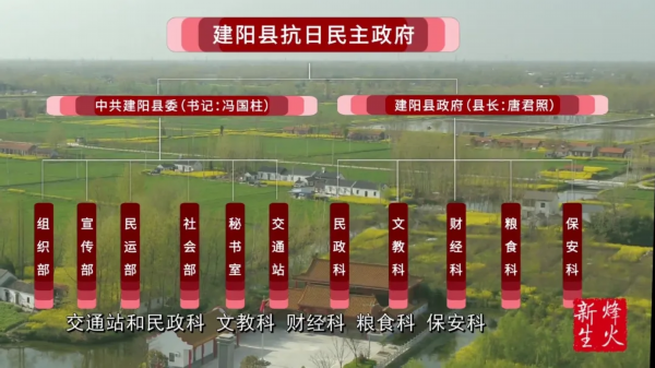 建阳县抗日民主政府成立了,第一任县委书记是:冯国柱,县长是:唐君照,下设组织部、宣传部、民运部、社会部、秘书室、交通站和民政科、文教科、财经科、粮食科、保安科。同时成立建阳县抗日自卫总队,由唐君照任总队长,冯国柱任政委。