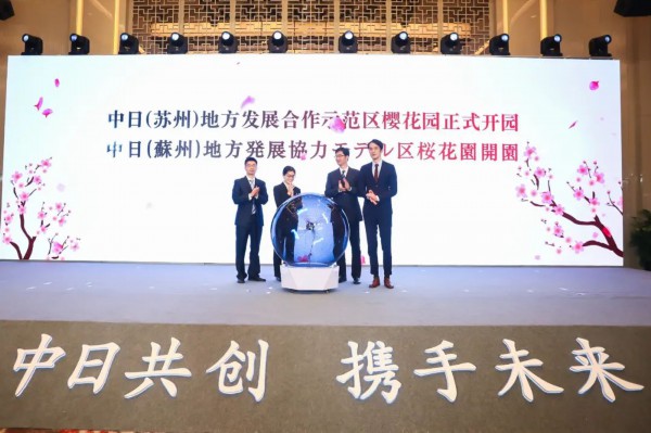 日本国驻上海总领事馆领事保田古都美,日本政府观光局上海事务所副所长尾崎健一郎,长三角区域合作办公室基础设施推进组副组长王统伟,相城区委常委、相城经开区党工委副书记、管委会副主任盛梦龙共同开园。