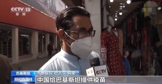 当地居民 巴吉尔·阿里:我们非常感谢中国疫苗,中国和巴基斯坦是老朋友,中国给巴基斯坦提供疫苗,我们相信疫情能够很快控制住,特别感谢中国政府的好意。