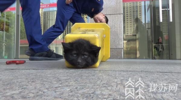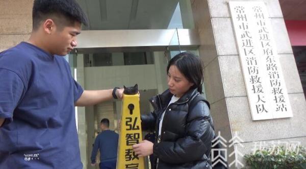 今天(4月12日)上午,记者从常州消防部门了解到一起让人捧腹的警情。4月9日下午4点左右,常州市武进区府东路救援站门口来了一位小姐姐寻求帮助,她手里拿着一个警戒筒,警戒筒顶端露出一只黑色的猫头。
