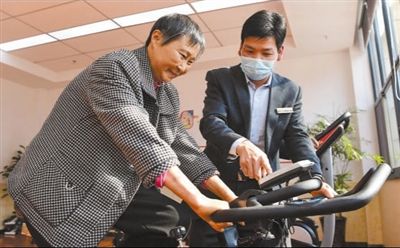 安徽省肥西县上派镇某居家养老服务中心,工作人员指导老年居民锻炼身体。
