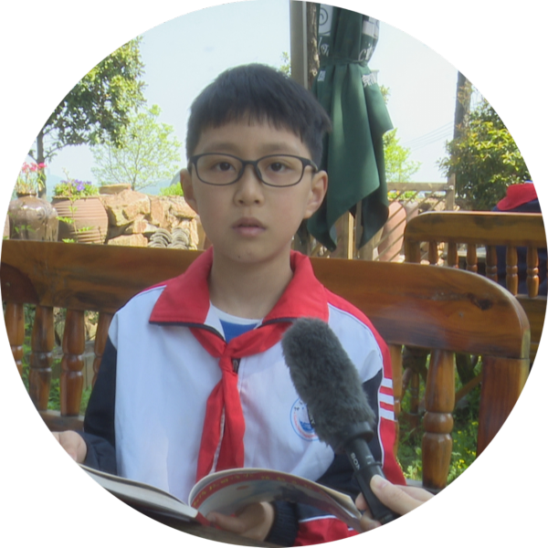 阳江中心小学学生 肖奕涵:“今天学校组织了社会实践活动,我们来到了慢城书院,这里有很多关于党史的书籍,老师给我们进行了详细讲解,我深受启发。”