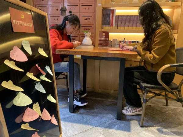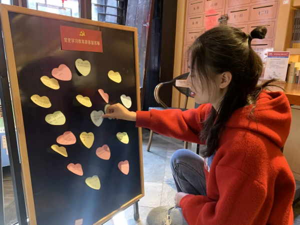 书坊内设立的党史学习教育读书角不仅成了游客群众的红色“充电站”,更成了党史学习的“教育课堂”。此外,在读书角还设置了留言板。