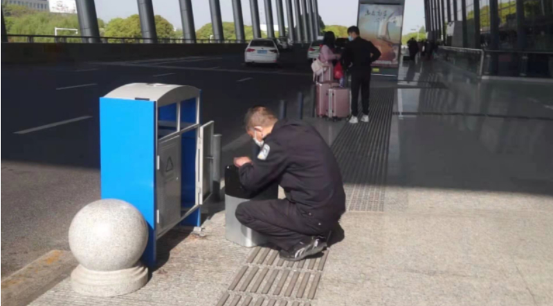 随后,张俊来到陶女士下车地点,找了十几分钟一无所获后,他回到办公室调阅监控,发现早晨5点59分,陶女士到达,下车后拿着行李进入航站楼,监控中看不出有戒指丢失的情况。但陶女士进入航站楼后不久,监控显示,一名保洁阿姨打扫过这段路面。张俊立即设法找到这位保洁阿姨,得知保洁扫完地后,把垃圾倒在了航站楼3号入口处的垃圾箱。他立即赶到该处垃圾箱,把里面的垃圾都倒出来,一点点翻找。找了10分钟后,终于在垃圾袋底部的废水中发现了一枚钻戒。