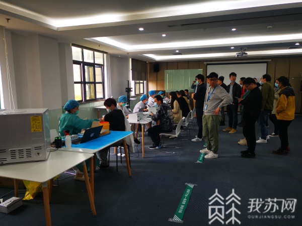 随着新冠病毒疫苗接种工作的有序推进,南京陆续推出惠企惠民措施,优化接种程序与服务。经过紧锣密鼓的布置,13日上午临时接种点走进南京软件企业聚集区,为企业员工接种疫苗带来了方便。4月13日上午,记者在南京中兴公司内看到,一处办公区经过连夜布置,已经变成一个功能完善的疫苗接种点。前来接种的企业员工秩序井然,现场还配备了血压仪血糖仪,对一些慢性病患者提供服务。负责人表示,前期对辖区内大型企业的员工接种新冠疫苗意愿进行了统计,员工接种意愿高涨,为了方便大型企业员工接种疫苗,减轻企业负担,他们连夜布置了临时接种场地,预计每天接种人数达2000人左右。