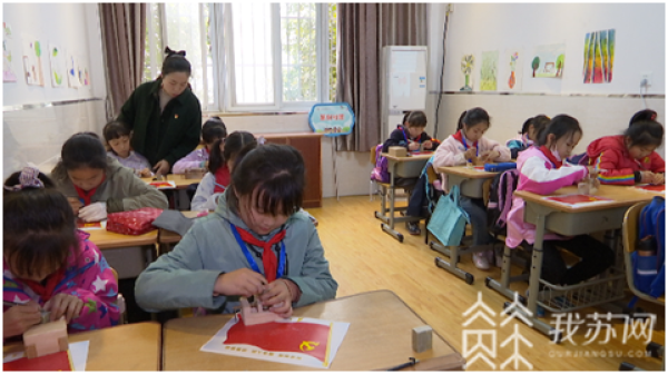 下午三点半,是江宁实验小学低年级学生的放学时间,但是大部分孩子都选择在校参加课后服务社团活动。篆刻、剪纸、手账……学校共开设了70多个课后社团活动,涵盖美术、体育、科技等多个方面,报名学生占全校总人数的80%。今年是建党100周年,在区教育局的指导下,江宁实验小学在“弹性离校”期间,优化活动课程设置,发掘项目特色资源,将党史学习融入“课后社团”活动,教育引导青少年童心向党追寻英雄精神,传承红色基因。